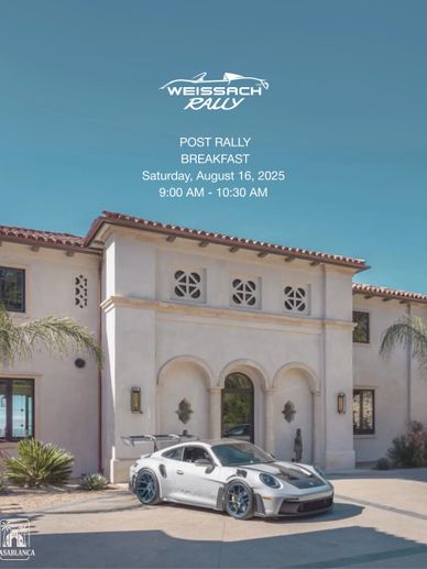 Weissach Rally | Monterey Edition is a roughly 100-mile, 2-hour sprint rally around the Monterey Bay region, designed as an opportunity to celebrate the fabulous automobiles of Car Week in motion rather than parked. The rally concludes with breakfast at a beautiful estate in the hills above Monterey.